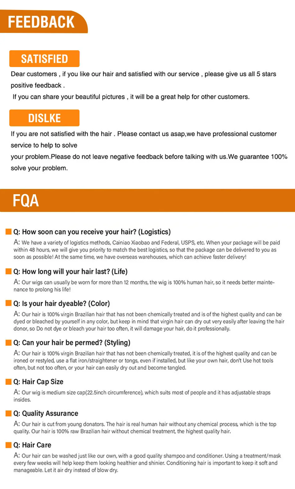 ♥Hair quality:No tangles, no shedding, can be dyed, permed, curled, straightened, durable and silky.
